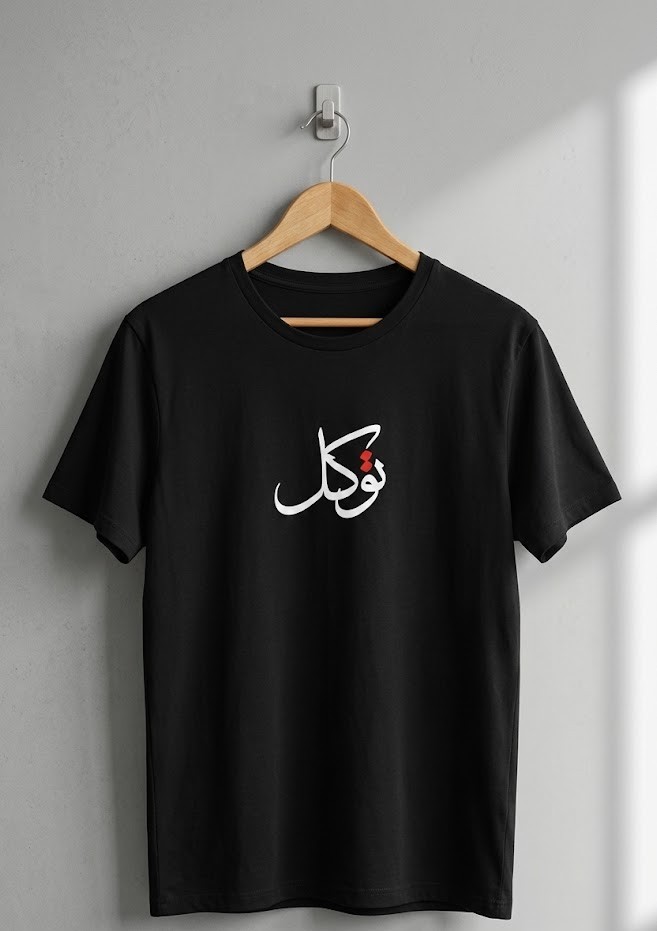 Elevate your streetwear collection with the Tawakkal Minimalist T-Shirt from Mirza Wears. This premium black tee features a striking white and red Arabic calligraphy design that translates to “Reliance” or “Trust,” offering a perfect blend of spiritual meaning and modern aesthetics.