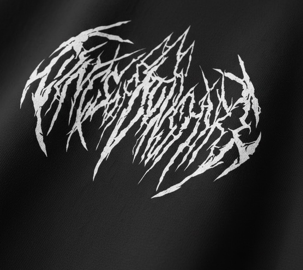 Design: Intricate white metal/deathcore-inspired graphic print.
